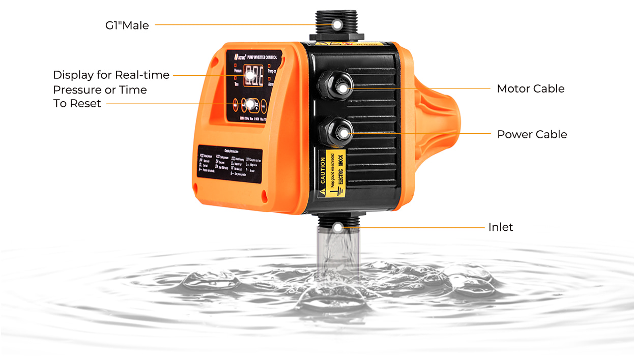 Power frequency: 50Hz Starting pressure setting: 0.5-9.5bar Max working pressure: 10bar Rated voltage: 220V Built-in digital screen for real-time pressure indicator |